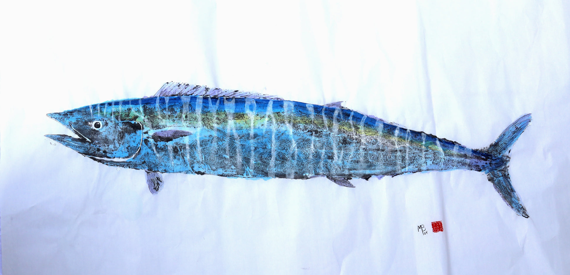 SOLD Original Wahoo Gyotaku Fish Print - 27" x 50"